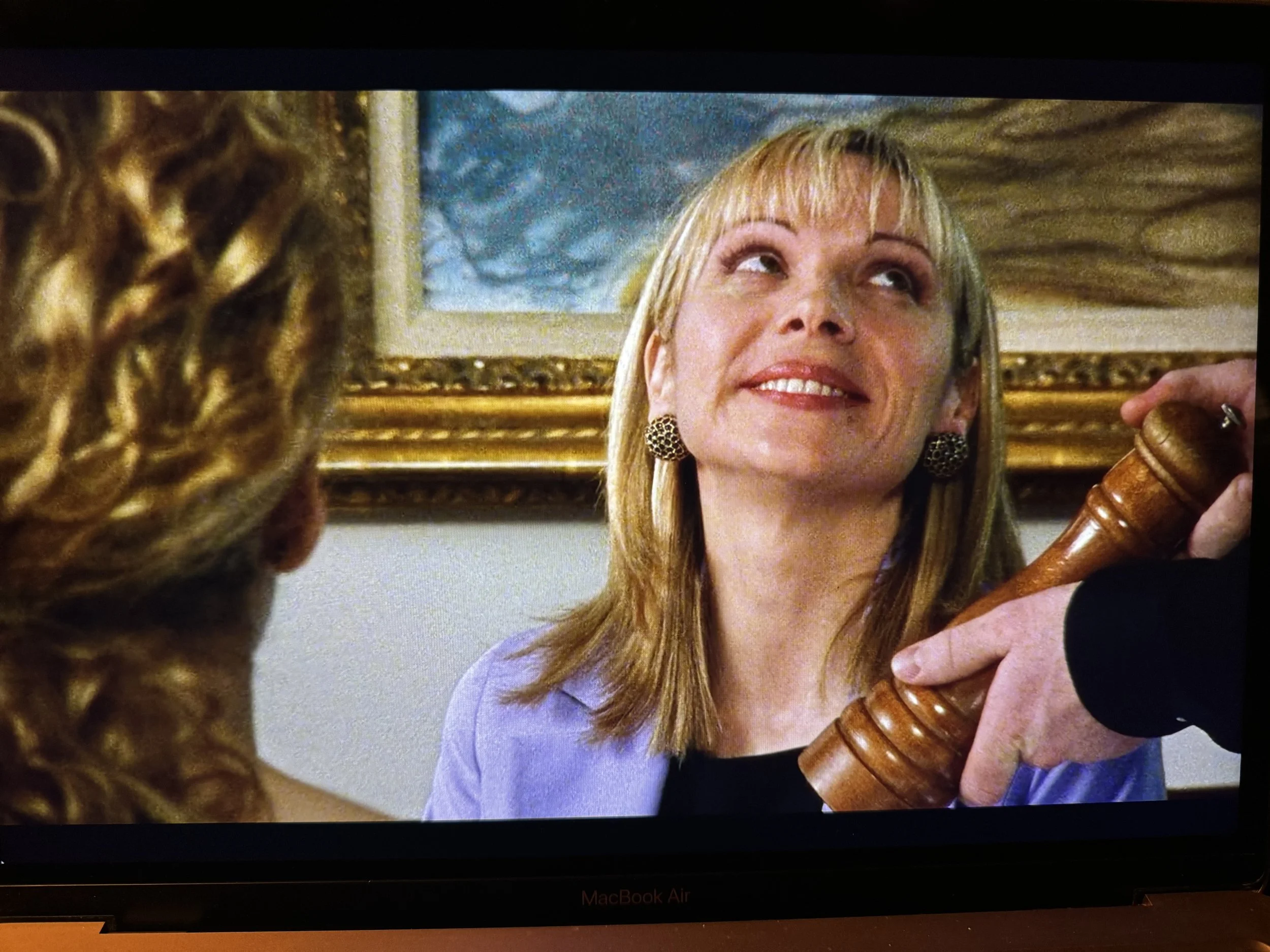 Next scene: Carrie (of course) tells her girlfriends, and when asked how big the penis was she refers to the peppermill being offered for their salads.
